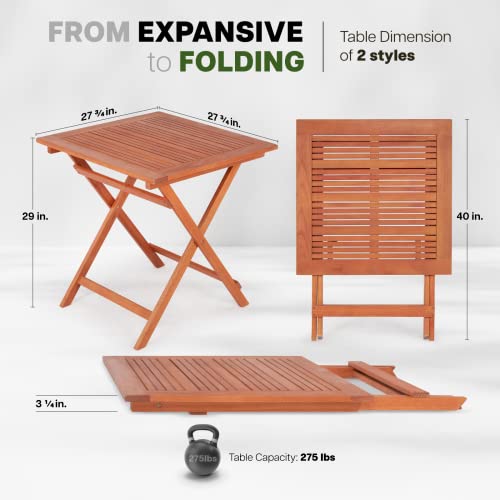 CONVENIENT AND PORTABLE: No need for assembly, our wood patio table is foldable and portable, allowing for easy transport and storage; Spend less time on setup and more time enjoying your outdoor moments