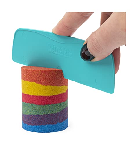 SURPRISE RAINBOW CREATIONS: With 6 Kinetic Sand tools, mix your colors, layer into the mold, squish and reveal your shape! Slice with the knife, squish and let it flow! Create rainbow surprises again and again!