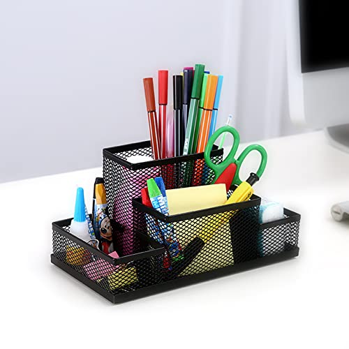 Specification: koofull Desk Organizer Desktop Mesh Pen Pencil Holder Caddy with 4 Compartments, Office Home School Classroom Accessories Cool Supplies