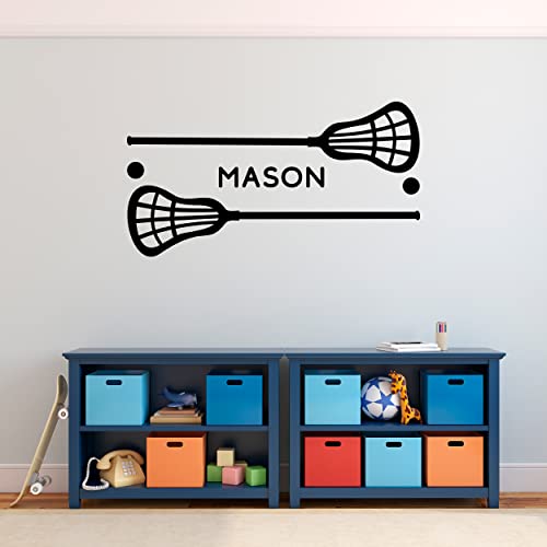 Lacrosse Personalized Stickers with Lacrosse Sticks Ball and Customizable Name – Lacrosse Wall Decor with Sports Accessories – Lacrosse Wall Decals for Boys Bedroom