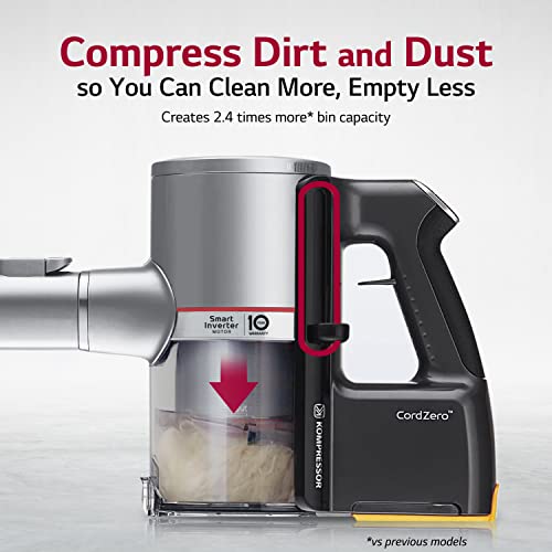 LG CordZero Cordless Stick Vacuum Cleaner, 2 Batteries Up to 120 Minutes [10 Year Motor Warranty] Powerful Cleaning for Carpet, Floor, Hardwood, Pet Hair, Lightweight, High-Capacity Dust Bin, A925KSM