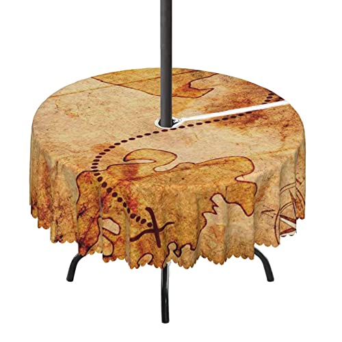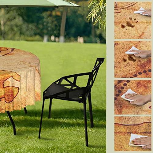 Specification: Lirduipu Compass Pattern Round Outdoor Tablecloth,Patio Table Covers,Round Table Cloth Washable Water Resistance Tablecloth with Umbrella Hole Zippered,for Patio Garden Tabletop Decor(72″ Round,Tan)