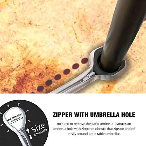 【QUIKLY INSTALLATION & DISASSEMBLE】No need to remove the patio umbrella: Features an umbrella hole with a zippered closure that zips on and off easily around patio table umbrellas.