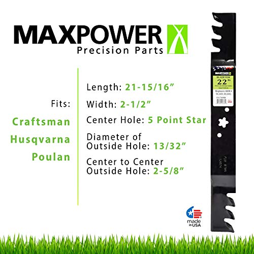 MaxPower 331749XB Commercial Mulching Blade for 22 in. Cut Craftsman, Husqvarna and Poulan Mowers Replaces OEM #’s 580244001 and 580244002