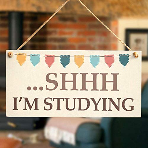 Meijiafei Shhh I’m Studying – Funny Do Not Disturb Home Accessory Gift Sign for Students 10″ X 5″