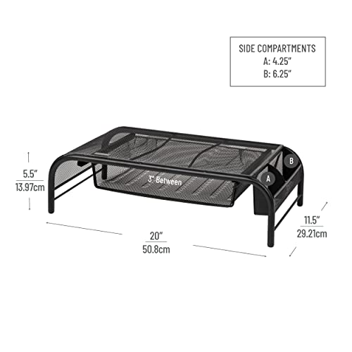 Mind Reader Monitor Stand, Set of 2, Ventilated Laptop Riser, Paper Tray, Office, Metal Mesh, 20″ L x 11.5″ W x 5.5″ H, Black