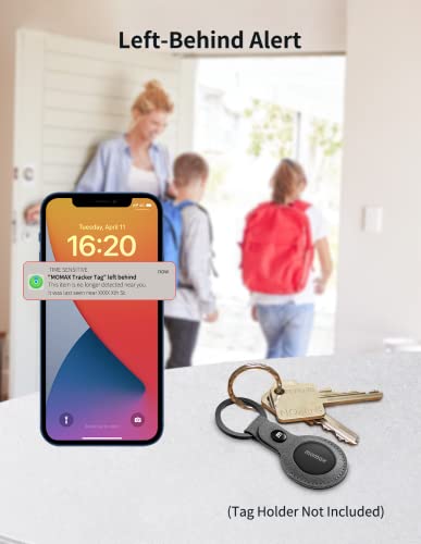 MOMAX Tracker Tag, Lost Key Finder Works with Apple Find My(iOS Only), Key Tracker with APP/Sound Location, 1 Year Replaceable Battery, Key Locator for Luggage/Suitcase/Wallet/Pet/Kid(4-Pack)