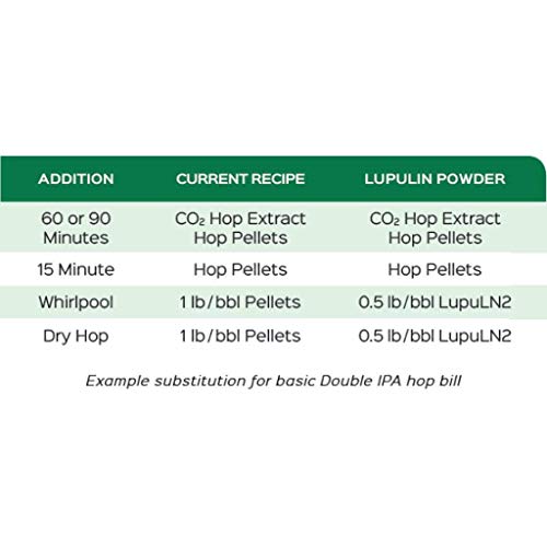 LupuLN2 is purified lupulin powder containing most of the resin compounds and aromatic oils derived directly from whole hop flowers. It is ideal for use in the whirlpool or fermenter for imparting intense hop flavor and aroma with minimal vegetal flavor and improved yield. Cryo Hops LupuLN2 represents the most innovative hop product technology available. Utilizing industry leading, cryogenic processing, whole-leaf hops are separated into lupulin and bract at extremely low temperatures. LupuLN2 hop powder is the concentrated lupulin of wholeleaf hops containing resins and aromatic oils. It is designed to provide intense hop flavor and aroma, enabling brewers to dose large quantities of hops without introducing astringent flavors or vegetative material. The estimated dosing rate for LupuLN2 hop pellets is 50% of T90 hop pellets by weight. LupuLN2 beers showcase pronounced juicy and resinous flavors with reduced grassy characteristics. As a result, some brewers recommend using LupuLN2 in conjunction with T90 pellets to ensure the complexity and flavors of the whole hop cone are retained. Alpha Acid: 22.1% Aroma: Blueberry, Tangerine, Papaya, Blossoms, Rose, Bubblegum
