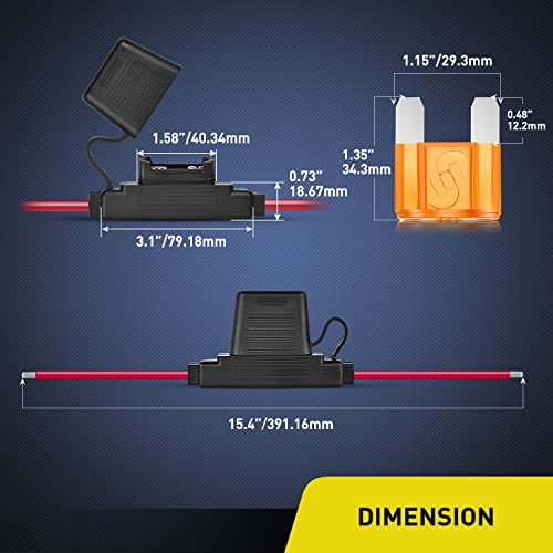In-Line Fuse Holder: Heavy duty 10 gauge (AWG) wire is tin-plated copper and made of high quality material with good electrical conductivity and melting resistance, great for APX Maxi blade fuse of 20A, 25A, 30A, 40A,50A,60A.