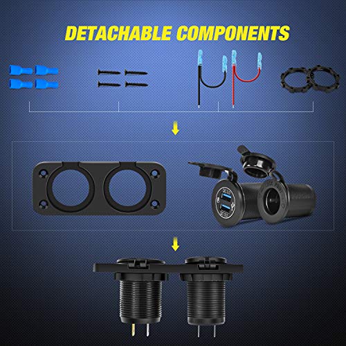 Nilight QC 3.0 USB Charger and Cigarette Lighter Socket Pre-Wired 12V-24V Dual USB Car Charger with Cigar Lighter Power Socket for Cars Trucks