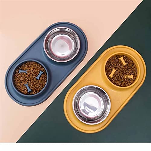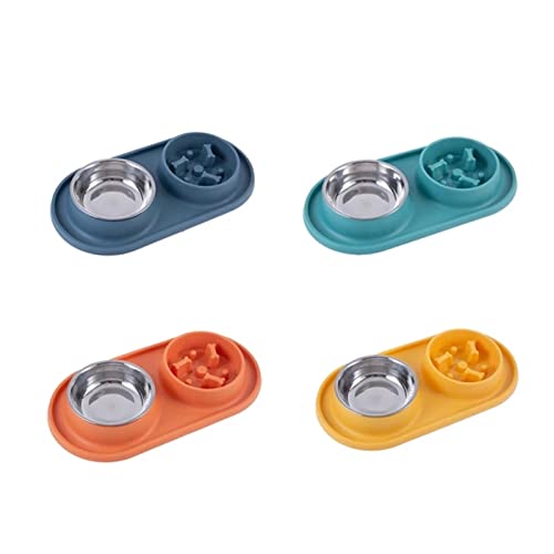 Specification: Pet Bowl Pet Double Bowl Stainless Steel Puppy Anti Choking Silicone Feeding Water Dog Cat Bowls Pets Feeder Supplies (Color : Orange)