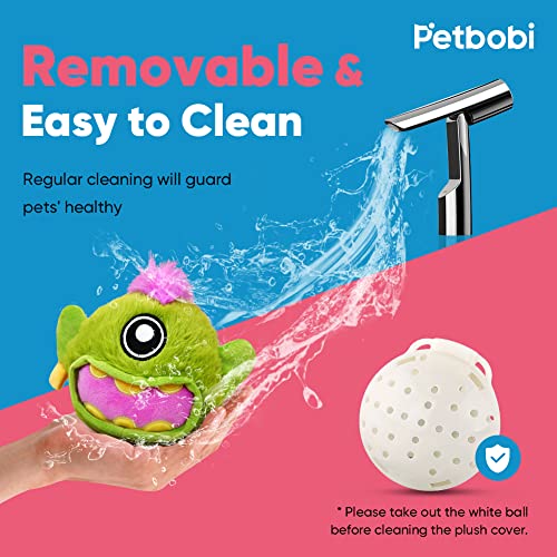 [Easy to Install & Washable] – Petbobi interactive dog toys is easy to install. Unfasten the Velcro, unscrew the battery cover with a screwdriver, and put in the battery. The cute plush cover supports washing, open the velcro of the plush cover, take out the bouncing ball, clean the plush cover, and dry.