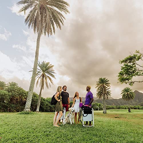 With classic lines and modern touches, the Sports Chair by ONIVA – A Picnic Time brand is a smart travel chair made of durable polyester canvas on a foldable and lightweight aluminum frame. Features abound with the extra-wide padded seat with armrests, a fold-out side table, a hanging arm rest caddy for holding books and magazines, two insulated beverage pockets, and a variety of additional pockets. Grab-and-go with the underseat carrying handles or use the adjustable, detachable shoulder strap for longer treks. This outdoor camping chair is ideal for camping, picnicking, concerts in the park, or watching your favorite sport comfortably from the sidelines. Maximum weight capacity for the chair is 300 pounds..