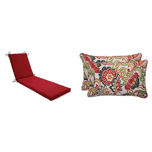 Pillow Perfect Pompeii Solid Indoor/Outdoor Patio Chaise Lounge Cushion Plush Fiber Fill, Weather and Fade Resistant, 80″ x 23″, Red & Outdoor/Indoor Zoe Citrus Lumbar Pillows, 11.5″ x 18.5″
