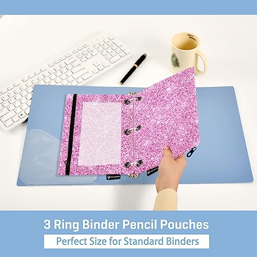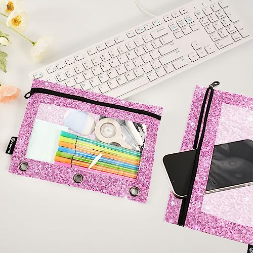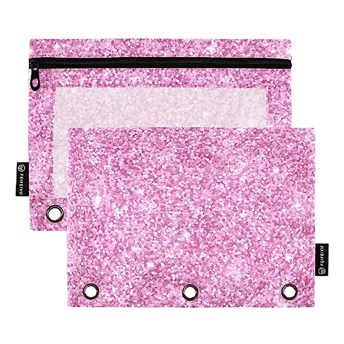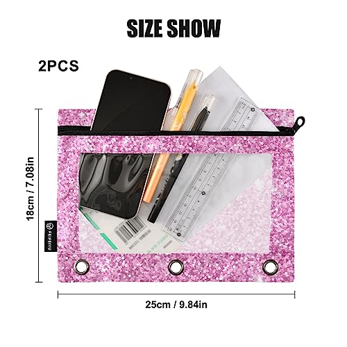 Specification: Pink Glitter Print Binder Pencil Pouch for 3 Ring Pencil Pouch with Zipper Clear Window Pencil Case Pencil Pouches Bags for Office Daily Supplies, 2 Pack