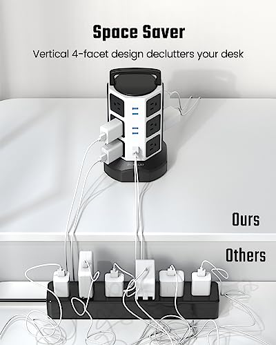 Specification: Power Strip Tower Surge Protector, JACKYLED 1625W 13A Outlet Surge Electric Tower, 12 Outlets 6 USB Ports Retractable Cord Charging Station with 16AWG 6.5ft Heavy Duty Extension Cord for Home Office
