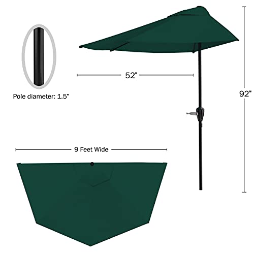 Pure Garden Half Round Patio Umbrella with Easy Crank – Compact 9ft Semicircle Outdoor Shade Canopy for Balcony, Porch, or Deck (Hunter Green)