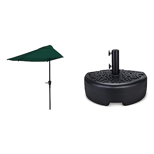Pure Garden Half Round Patio Umbrella (Hunter Green) & Home Zone Living 40lb Half Round Fillable Patio Umbrella Base Stand, 18in, Pole Holder, Water or Sand, Fits Poles Up to 1.9in(48mm)