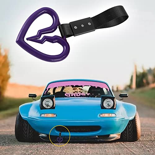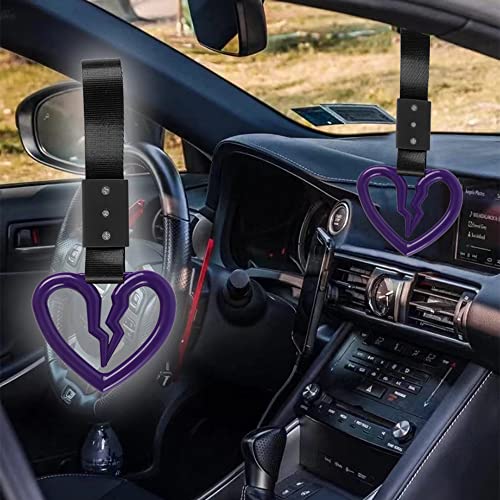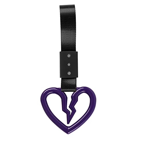 Q1-TECH, JDM Tsurikawa Ring Japanese Subway Train Bus Car Handle Cute Broken Heart Handle Hand Strap Rear Front Bumper Warning Rings Drift Charm Drift Bosozoku Car Accessory (Purple -BK)