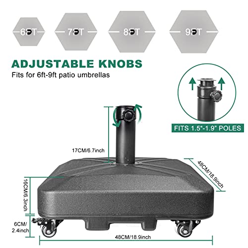 Specification: RAOKUKH DZ4733 MS Patio Umbrella Base Heavy Duty with Wheels Square Market Stand for Outdoor 4 Locks 1 Knobs 125lb Capacity, Black