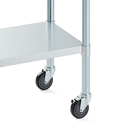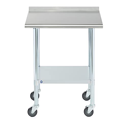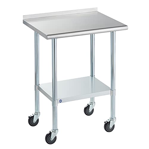 Specification: Rockpoint Stainless Steel Table for Prep & Work with Backsplash and Caster 30×24 Inches, NSF Metal Commercial Kitchen Table with Adjustable Under Shelf and Table Foot for Restaurant, Home and Hotel