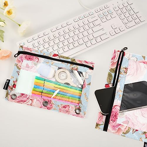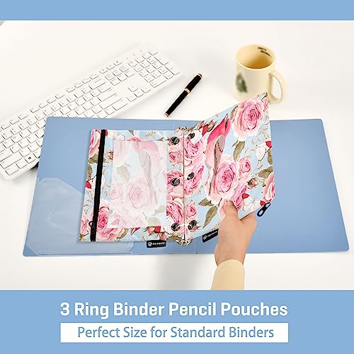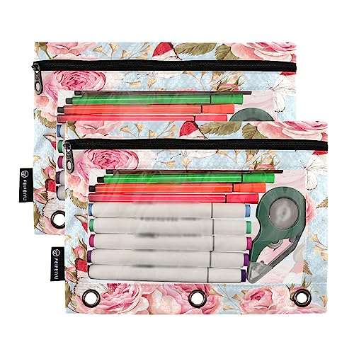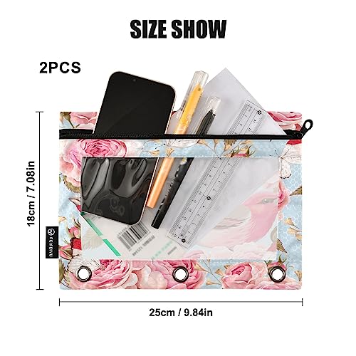 Specification: Rose Birds Flowers Binder Pencil Pouch for 3 Ring Pencil Pouch with Zipper Clear Window Pencil Case Pencil Pouches Bags for Office Supplies Daily, 2 Pack