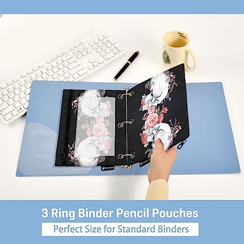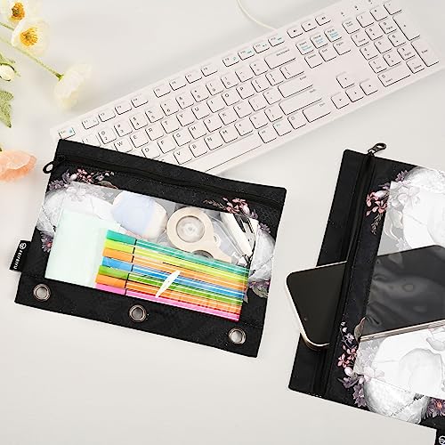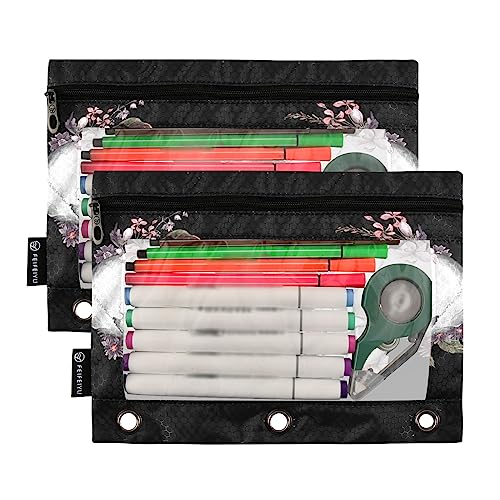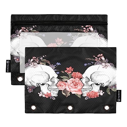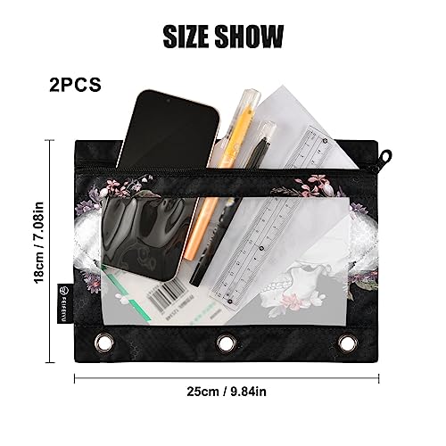 Specification: Roses and Skull Binder Pencil Pouch for 3 Ring Pencil Pouch with Zipper Clear Window Pencil Case Pencil Pouches Bags for Travel Office Supplies, 2 Pack