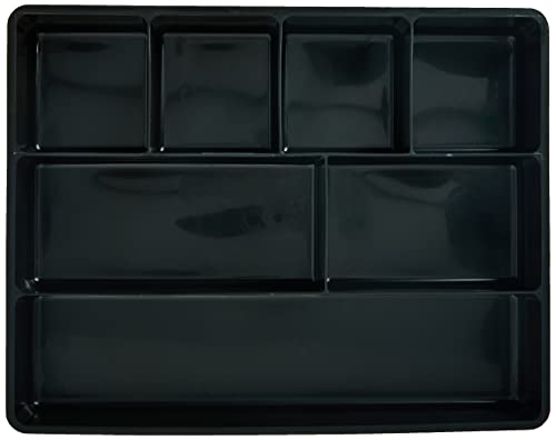 Extra-capacity, deep bins hold a bounty of office supplies. Seven sections keep loose supplies organized and easy-to-locate so you save time. Plastic construction stands up to years of use and still looks great. A wealth of storage space comes in handy as your business grows. The perfect solution for eliminating clutter and introducing organization to any desk. Compartments: 7 Sections; Global Product Type: Drawer Organizers; Adjustable: No; Height: 2 1/2 in.