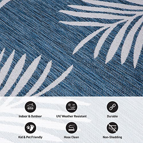 Rugshop Contemporary Palm Leaves Textured Flat Weave Easy-to-Clean Outdoor Rugs for Deck,Patio,Backyard Indoor/Outdoor Runner Rug 2′ x 7′ Navy