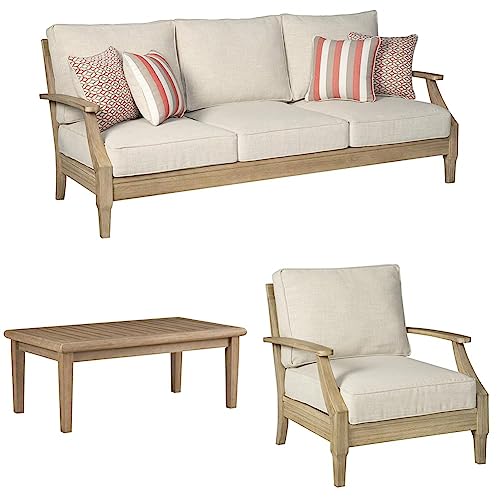 Specification: Signature Design by Ashley Clare View Coastal Outdoor Patio Eucalyptus Sofa & Gerianne Rectangular Eucalyptus Wood Slat Top Coffee Table & Clare View Eucalyptus Wood Single Cushioned Lounge Chair
