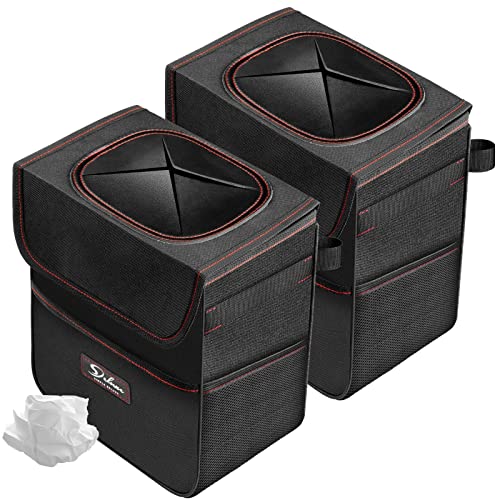 Simple Deluxe 2 Pack Car Trash Can with Lid and Storage Pockets, Leak-Proof Car Garbage Can with Adjustable Straps, Waterproof, Portable and Collapsible Trash Bag for Car, 2 Gallon, Black