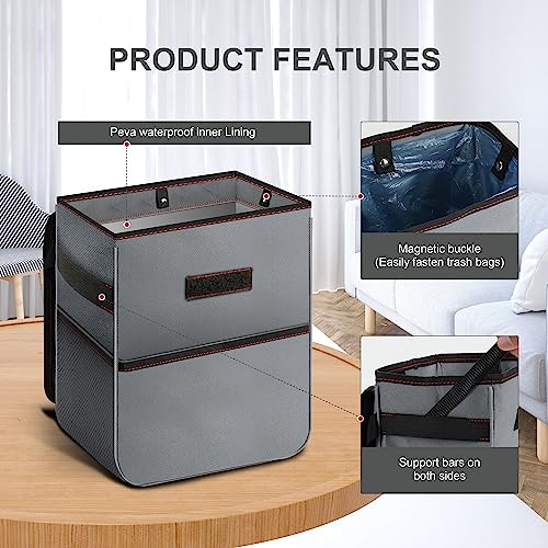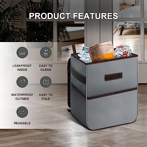 Multi-function use: This trash bin comes with three side pockets, it can hold garbage and can also be used as a storage bag for cups, snacks, and other supplies. The waterproof design makes it a cooler for storing beverages, meeting your various needs