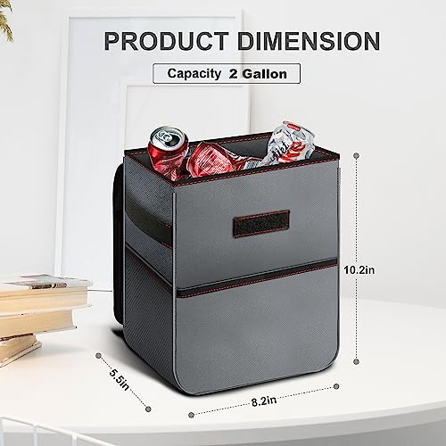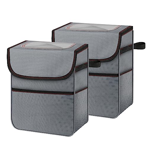Simple Deluxe 2 Pack Car Trash Can with Lid, Leak-Proof Car Garbage Can with Storage Pockets, Collapsible Multipurpose Car Trash Bag for Car Accessories, 2 Gallon, Grey
