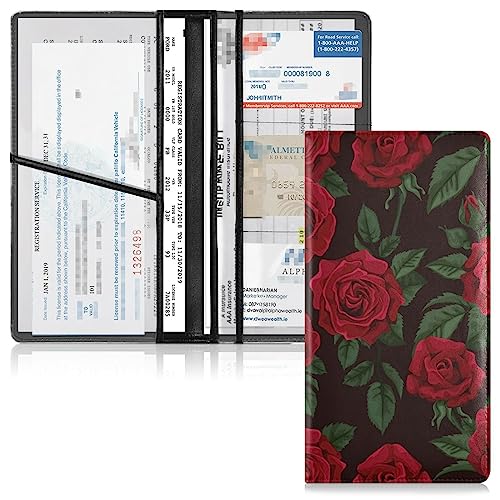 Specification: Sinestour Roses Car Registration and Insurance Card Holder Leather Vehicle Glove Box Organizer Cute Car Accessories Glove Compartment Organizer for Insurance Documents