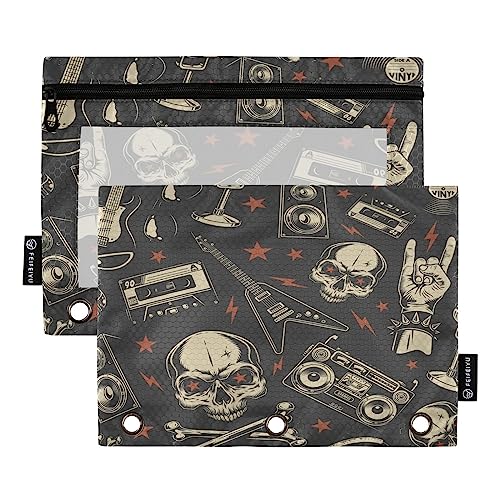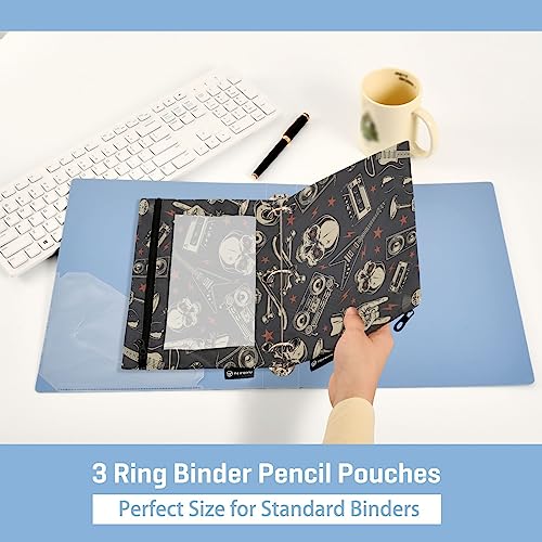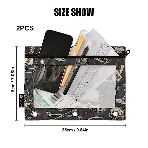 Skull Binder Pencil Pouch for 3 Ring Pencil Pouch with Zipper Clear Window Pencil Case Pencil Pouches Bags for Office Supplies Daily Cosmetic, 2 Pack