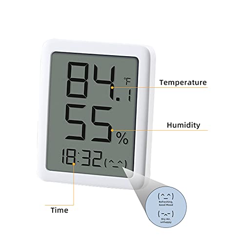 【HD Large Screen, Time Display】 The product adopts a 3.5-inch high-definition high brightness LCD screen, high contrast digital segment code design, so that the screen is clearer.The time at the bottom of the screen allows you to keep track of the changes in ambient temperature and humidity over time. The expression on the right side of time will tell you whether the current environment is comfortable, so that you can make adjustments timely.