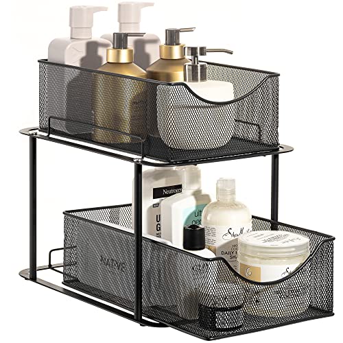 Sorbus 2 Tier Under Sink Bathroom Organizers and Storage, Strong Steel Mesh Sliding Drawers for Enhanced Bathroom Storage, Bathroom Organization and Storage & Under Kitchen Sink Organizer (Black)