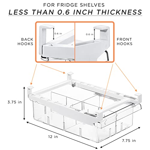 Easy Assembly — Attach drawer in minutes with little assembly required — Adjustable rail extension extends up to 19 inches to fit most standard-sized fridge shelves — Be sure to measure before purchase: suitable for fridge shelves less than .6 inches thick