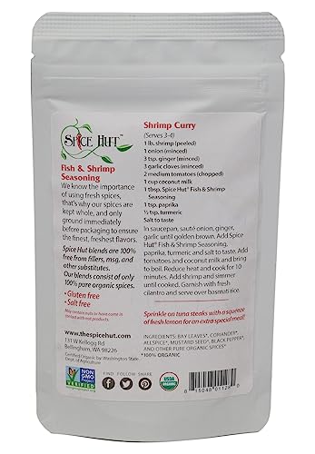 Specification: Spice Hut – Organic Fish & Shrimp Seafood Seasoning Mix, Salt-Free, Savory Gourmet Spice Blend for Cooking White Fish, Grilled Fish, Shrimp Skewers, Tacos, Seafood Pasta, Baked Fish / All-Natural, Kosher, Gluten Free, Vegan, Keto -No MSG- 2oz Pack