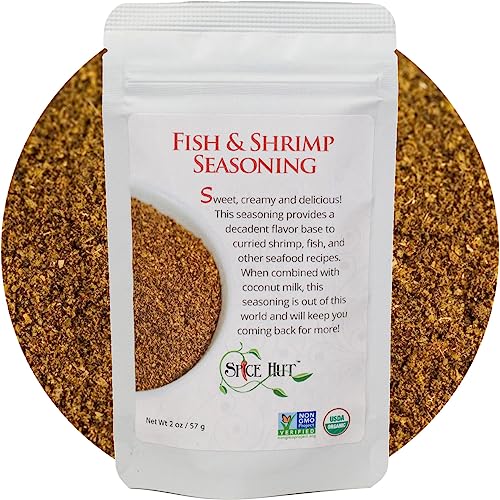 Spice Hut – Organic Fish & Shrimp Seafood Seasoning Mix, Salt-Free, Savory Gourmet Spice Blend for Cooking White Fish, Grilled Fish, Shrimp Skewers, Tacos, Seafood Pasta, Baked Fish / All-Natural, Kosher, Gluten Free, Vegan, Keto -No MSG- 2oz Pack