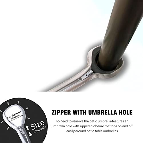 【QUIKLY INSTALLATION & DISASSEMBLE】No need to remove the patio umbrella: Features an umbrella hole with a zippered closure that zips on and off easily around patio table umbrellas.