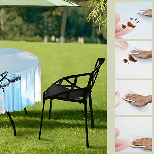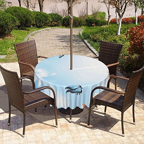 Spring Pattern round outdoor tablecloth,patio table covers,Outdoor/Indoor Waterproof Spillproof Round Tablecloth with Umbrella Hole,for Backyard Party BBQ Decor(60″ Round,Pale Pink White Blue)