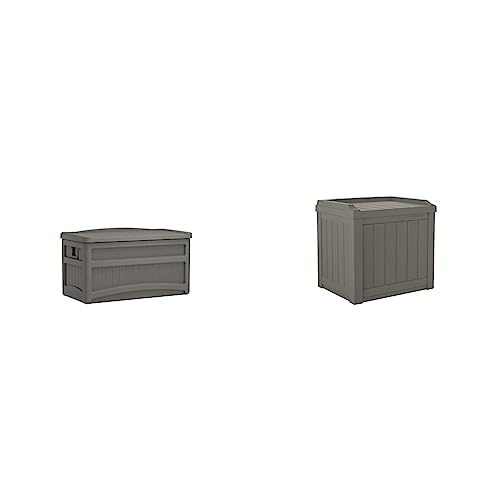 Suncast 73 Gallon Indoor/Outdoor Medium Deck Storage Box & 22-Gallon Small Deck Box – Lightweight Resin Indoor/Outdoor Storage Container and Seat for Patio Cushions and Gardening Tools – Stone Gray