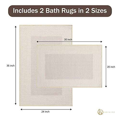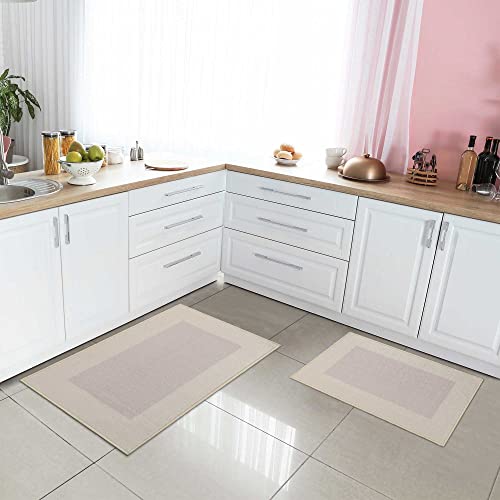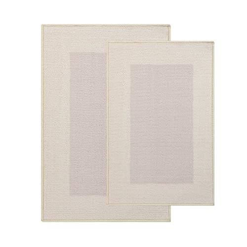 Superior Nylon Kitchen Mat Set, Small Washable Area Rugs, Non-Slip Backed Rugs, Low Height Easily Slides Under Doors, Neutral Home Decor, Hardwood/Tile Floor Accent Rug, Troy Collection, Cream