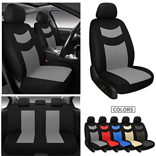 Tapha Universal Car Seat Covers Full Set – Front and Rear Split Bench, Easy to Install, Breathable and Washable Universal Interior Covers for Auto, SUV, Sedan, Van, Airbag Compatible, Black & Grey