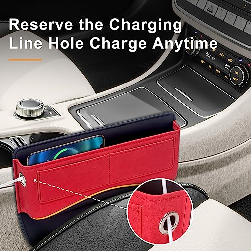 Tecfino Car Seat Gap Filler, Leather Car Seat Organizer and Storage, Universal Car Seat Storage Box Car Accessories, Adjustable Car Seat Organizer Front Seat for Phones, Cards, Keys(RED)