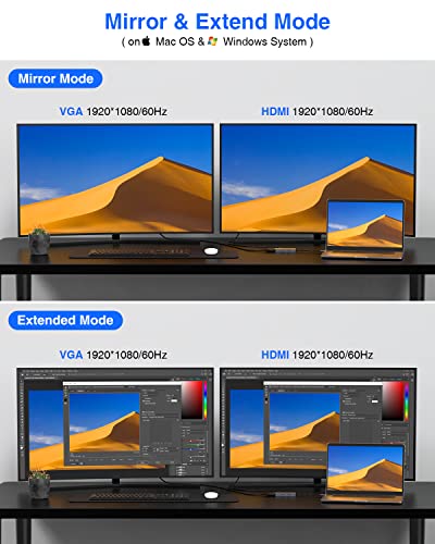 [UHD 4K Output ]: Make your life more colorful – mirror or extend your screen with the USB C adapter’s HDMI port and directly stream 4K UHD or full HD 1080P video to HDTV, monitors, or projectors for a cinema-like visual feast. When the HDMI and VGA output ports work simultaneously, The display can duplicate and extend but the maximum resolution of both ports is 1080P.