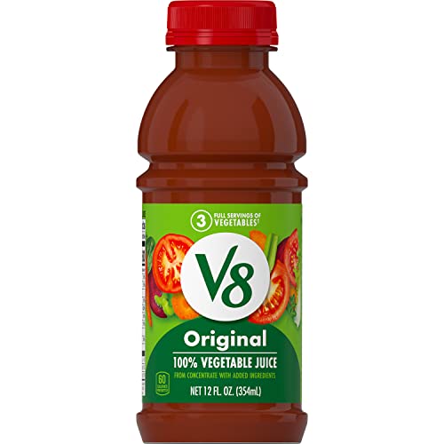 V8 Original 100% Vegetable Juice, Vegetable Blend with Tomato Juice, 12 fl oz Bottle (Pack of 12)