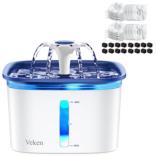 Veken 95oz/2.8L Pet Fountain & Original Design 32 Pack Replacement Filters & Sponges Set (Blue, Plastic)