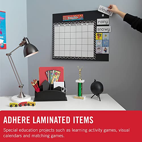 ADHERE LAMINATED ITEMS: Special education projects such as learning activity games,visual calendars, matching games fastening badges to student desks